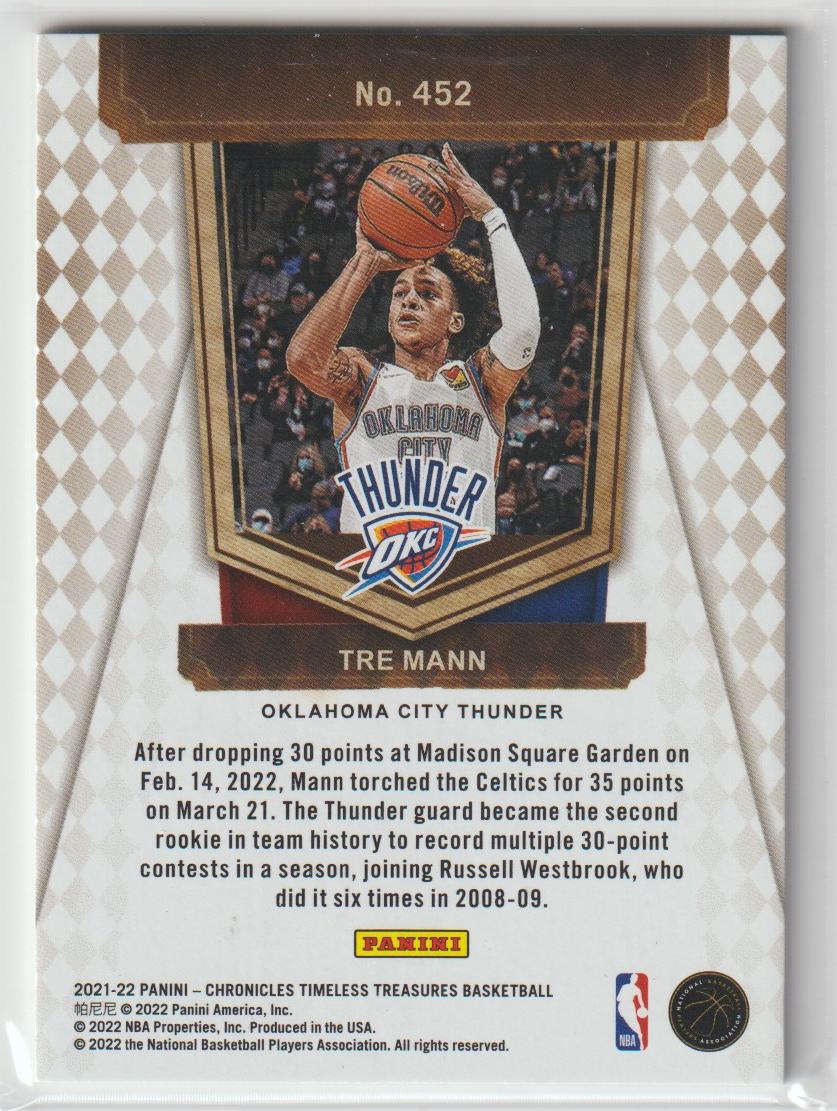 452 Tre Mann - Oklahoma City Thunder Red 92/149 2021/22 Chronicles Basketball