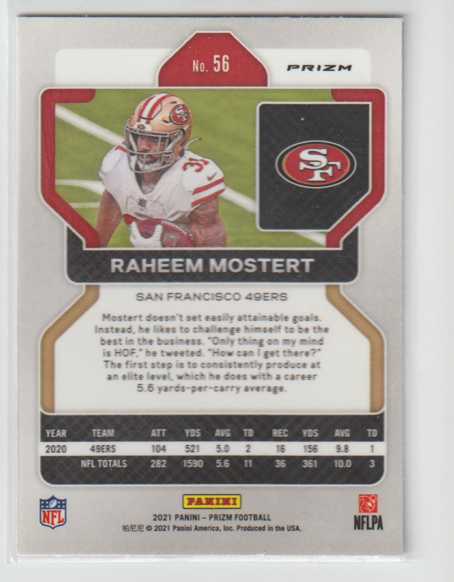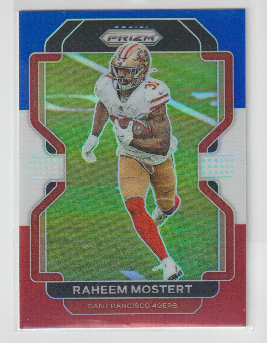 56 Raheem Mostert - San Francisco 49ers Red White Blue 2021 Prizm Football