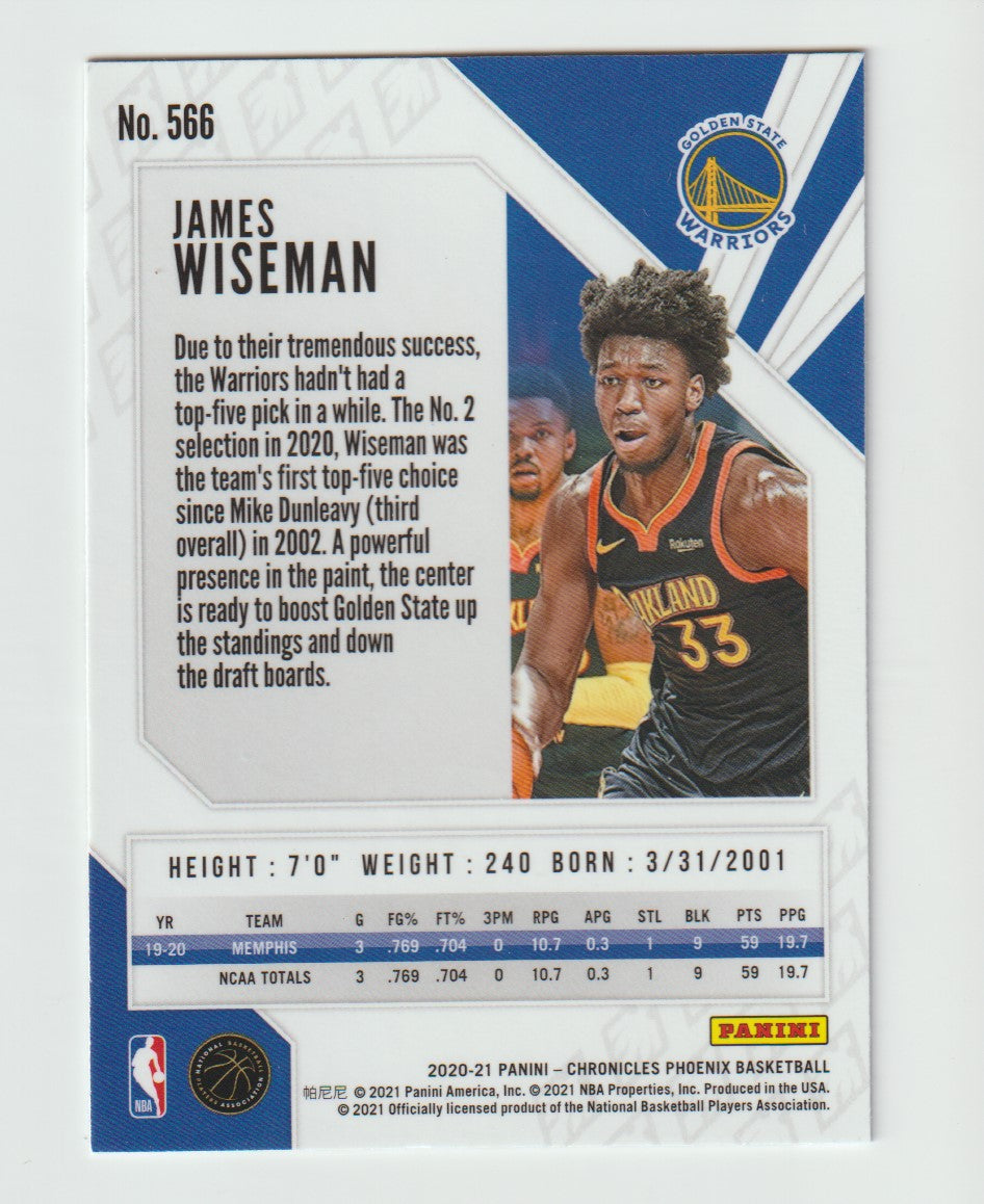 566 James Wiseman - Golden State Warriors 20/21 Chronicles Basketball