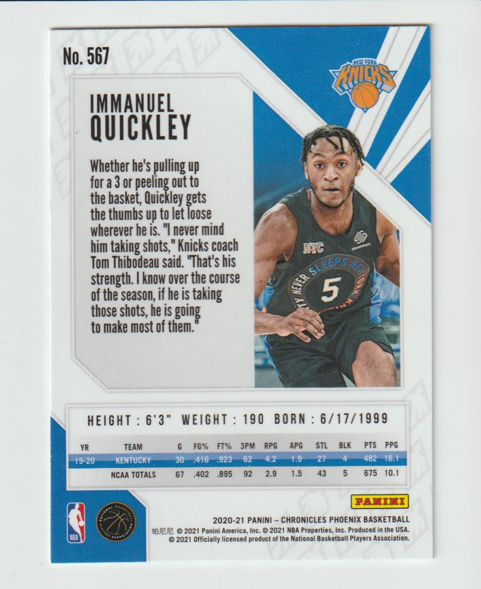 567 Immanuel Quickley - New York Knicks 20/21 Chronicles Basketball