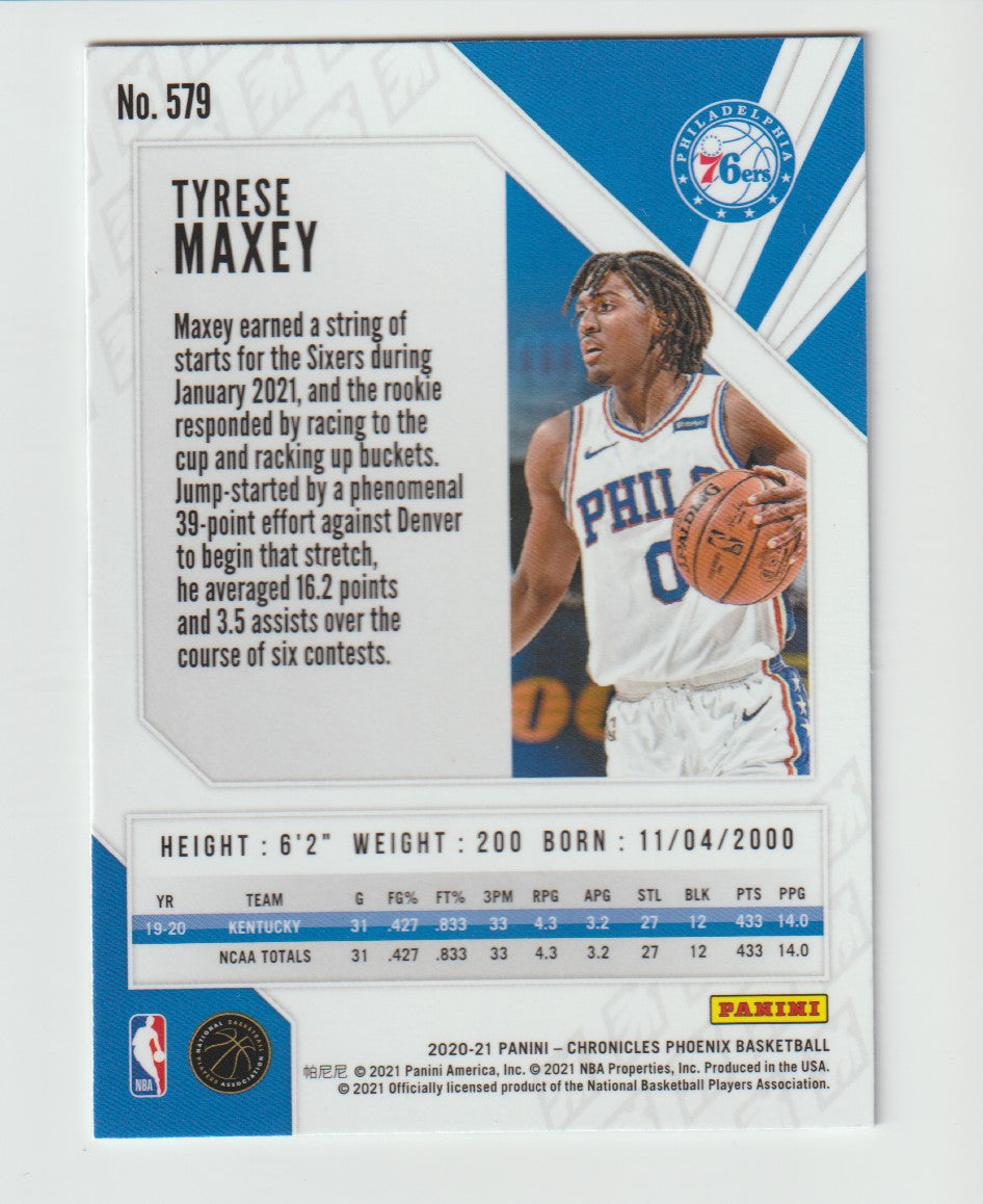579 Tyrese Maxey - Philadelphia 76ers 20/21 Chronicles Basketball
