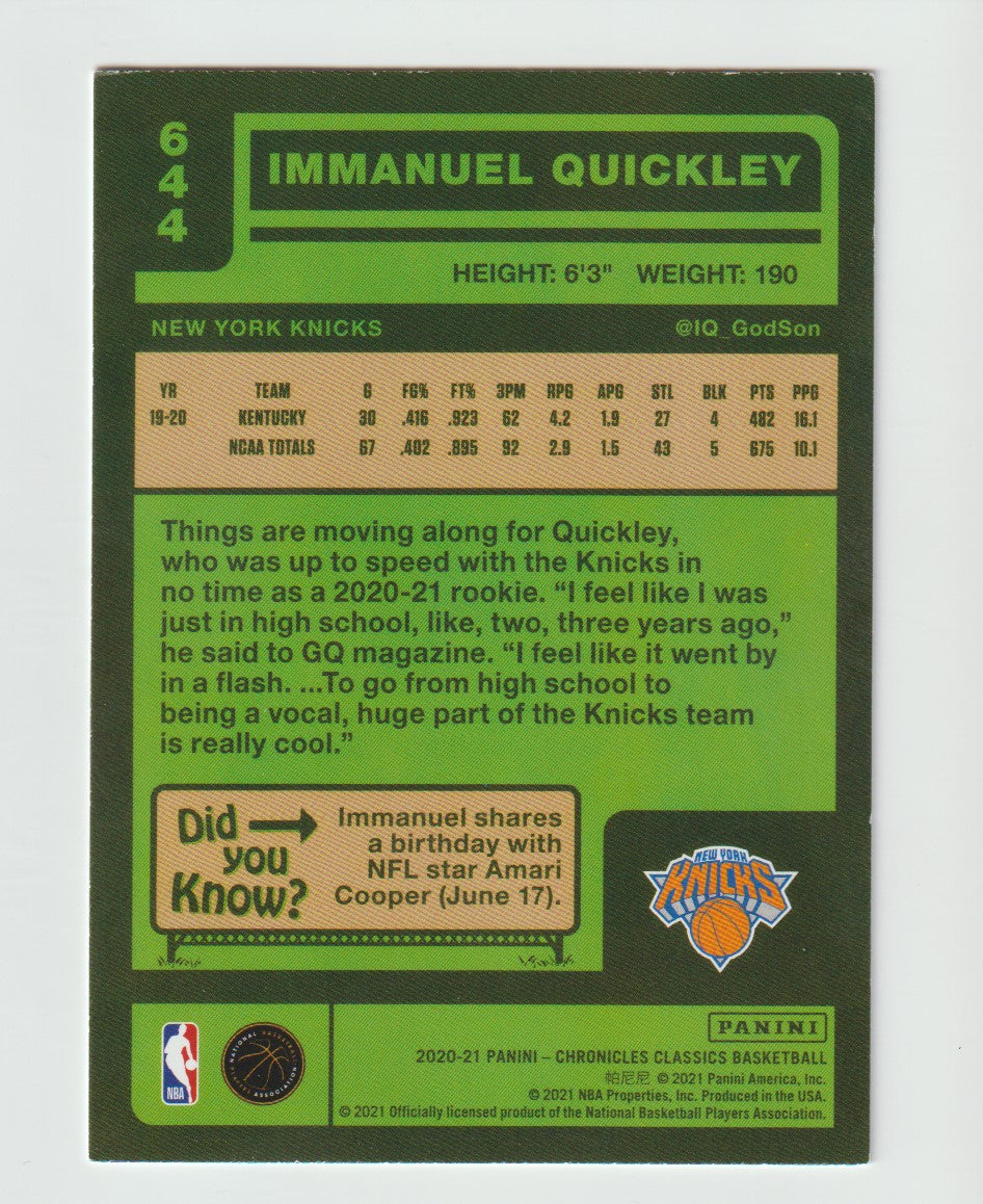 644 Immanuel Quickley - New York Knicks 20/21 Chronicles Basketball