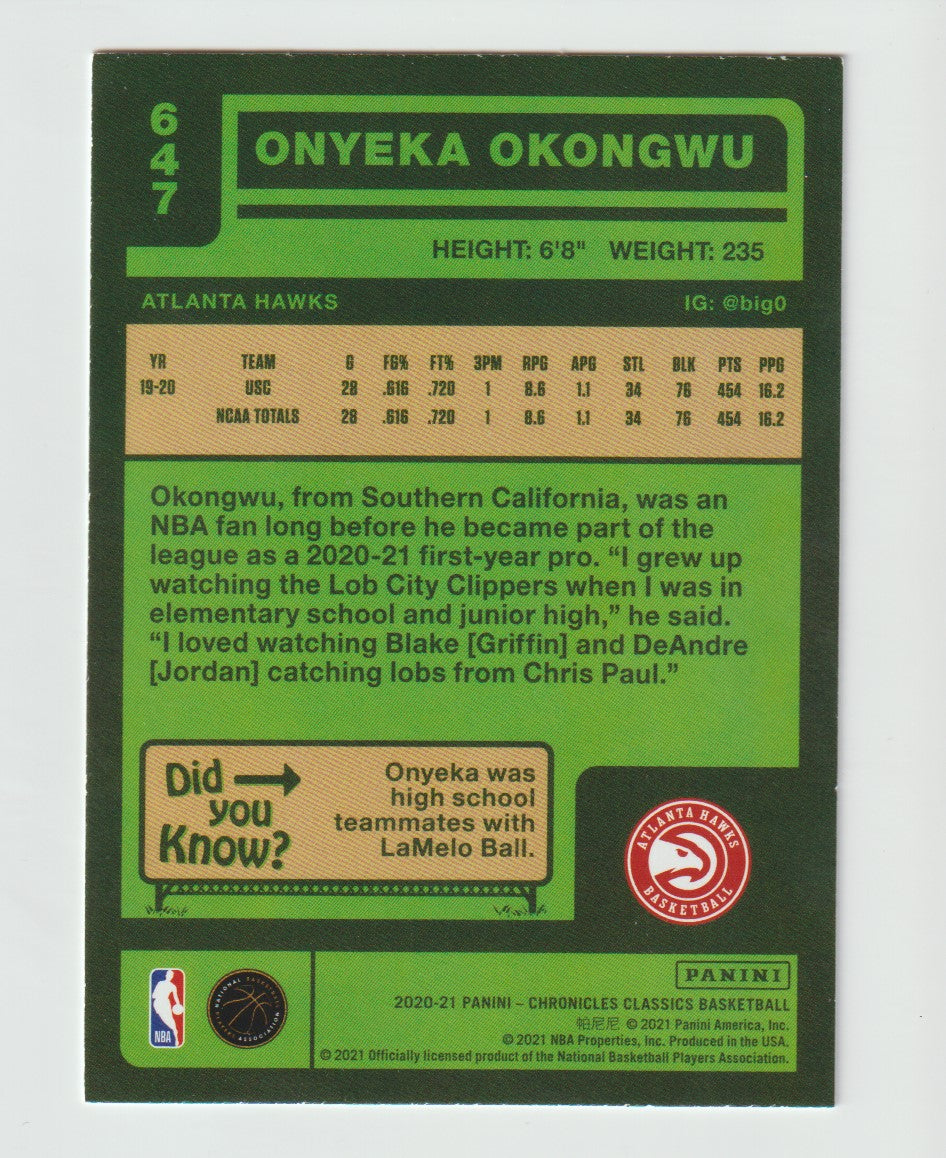 647 Onyeka Okongwu - Atlanta Hawks 20/21 Chronicles Basketball