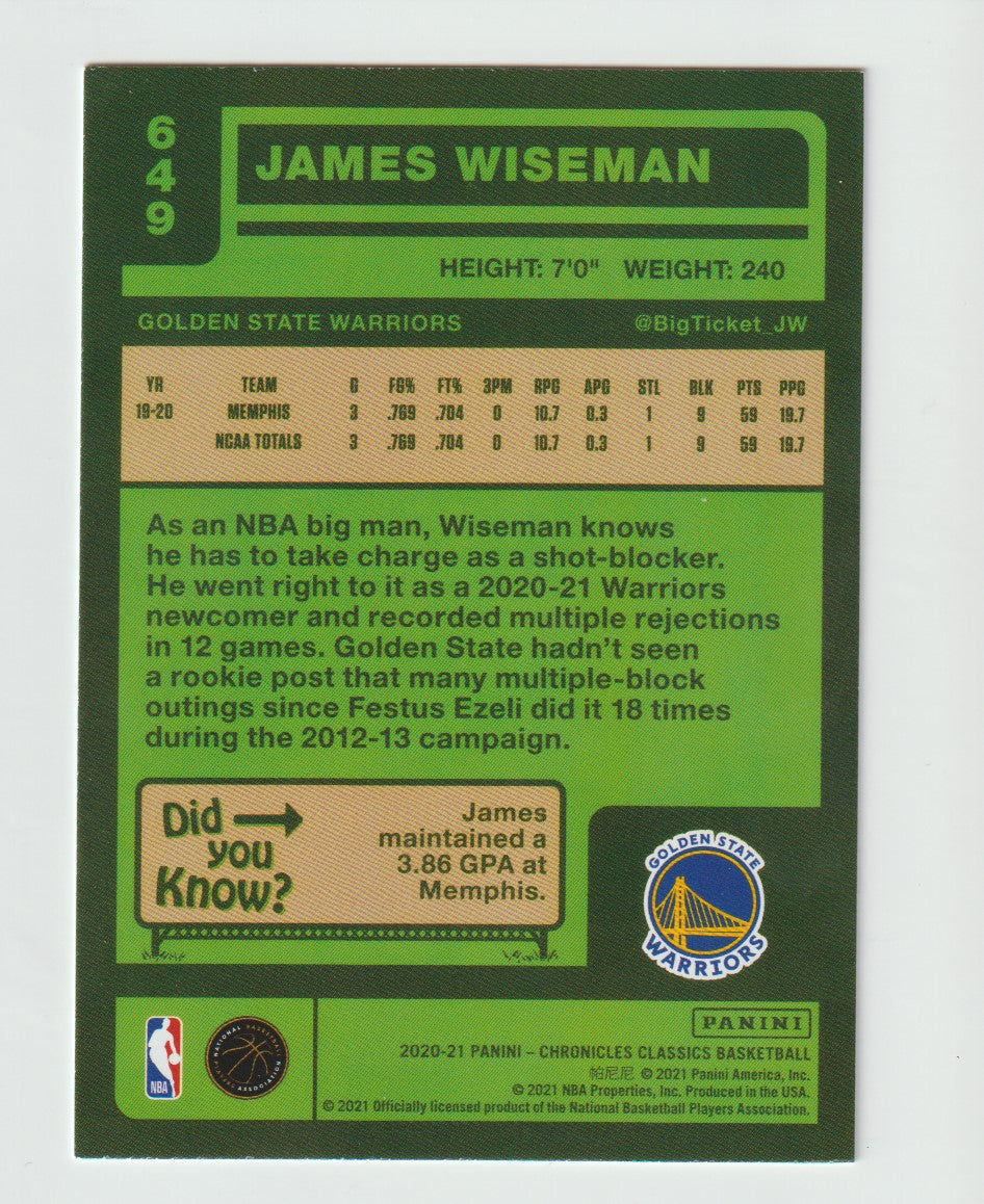 649 James Wiseman - Golden State Warriors 20/21 Chronicles Basketball