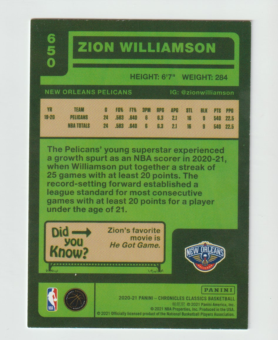 650 Zion Williamson - New Orleans Pelicans 20/21 Chronicles Basketball