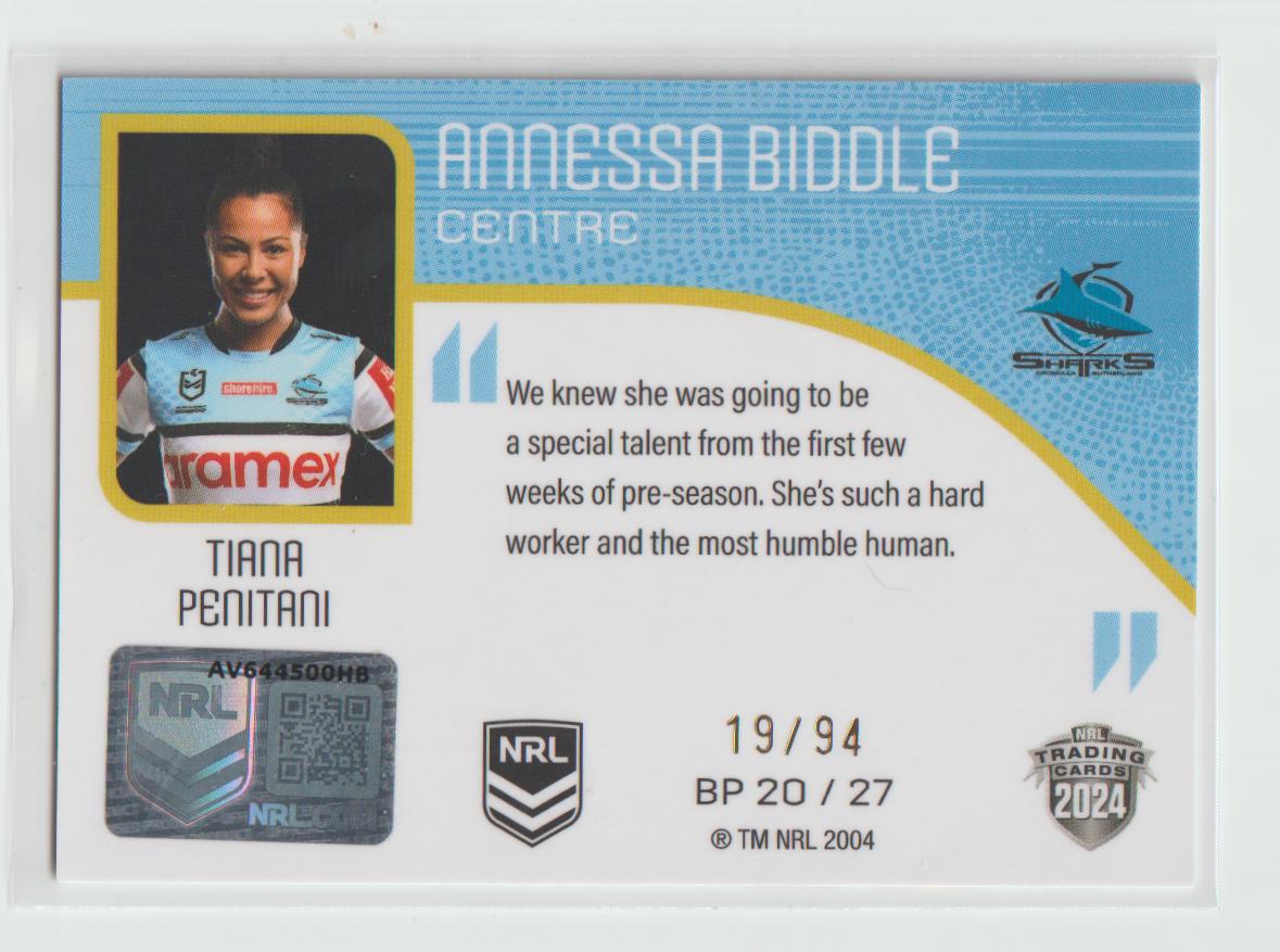 BP 20/27 SHARKS ANNESSA BIDDLE 19/94