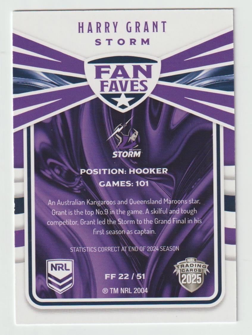 Fan Faves FF 22 STORM HARRY GRANT 2025 NRL Traders We prioritize the safe delivery of your sports cards. Each item will be securely packaged in a padded mailer to ensure it reaches you in pristine condition. Please be aware that our standard letter with tracking option includes a registered padded mailer for added security. Take advantage of our combined postage offer for multiple card purchases, or opt for tracked postage, available for both Australian and international buyers at their expense.