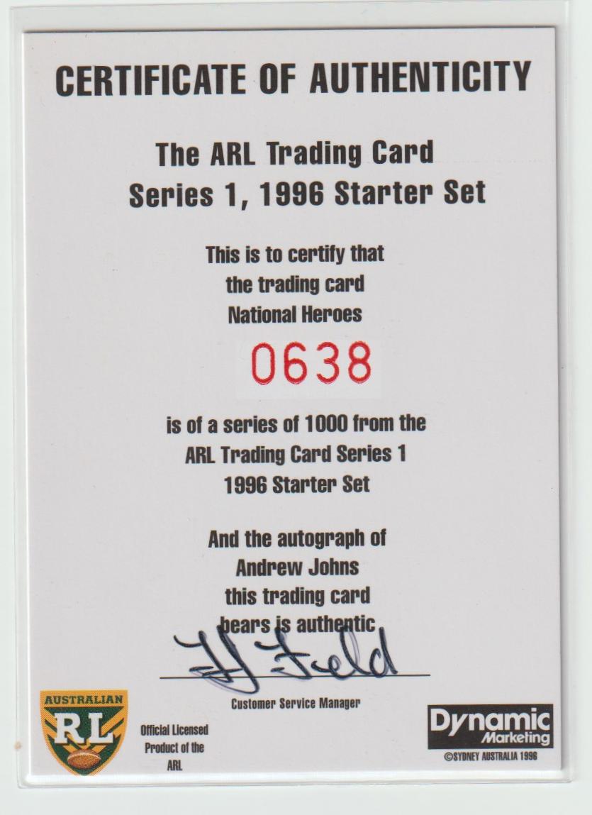 National Heroes Signature NH1 Andrew Johns 638/1000