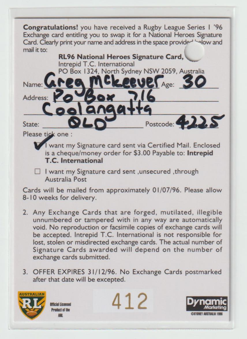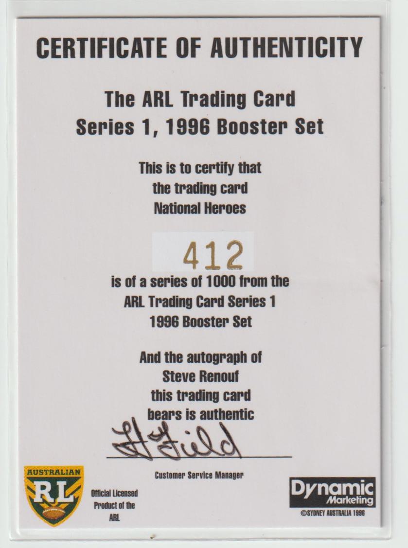 National Heroes Signature NH5 Steve Renouf 412/1000