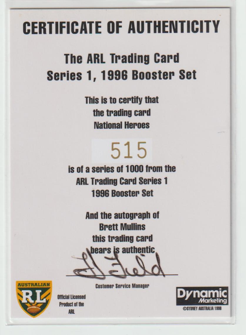 National Heroes Signature NH6 Brett Mullins 515/1000