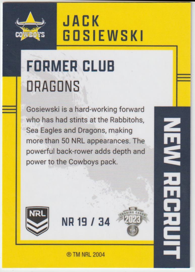 NR 19 / 34 COWBOYS JACK GOSIEWSKI 2023 NRL Elite