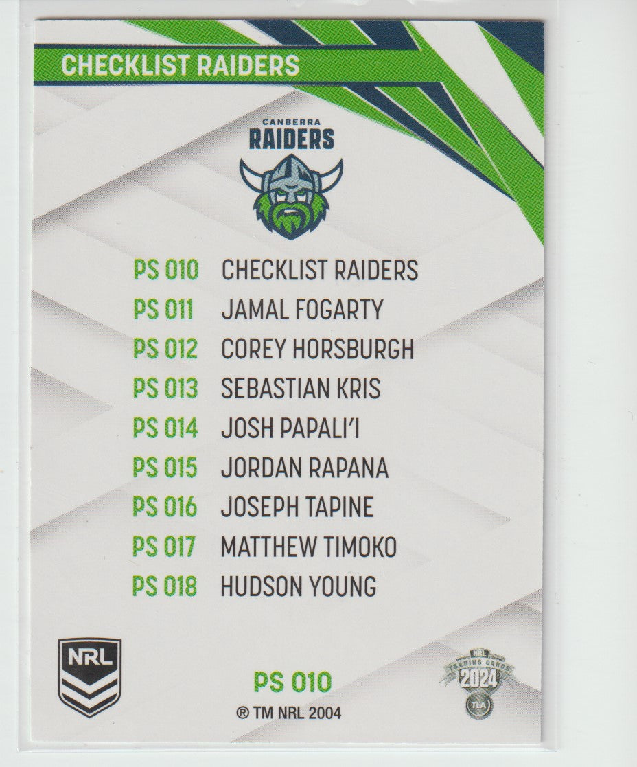 PS 010 RAIDERS CHECKLIST 2024 NRL Traders