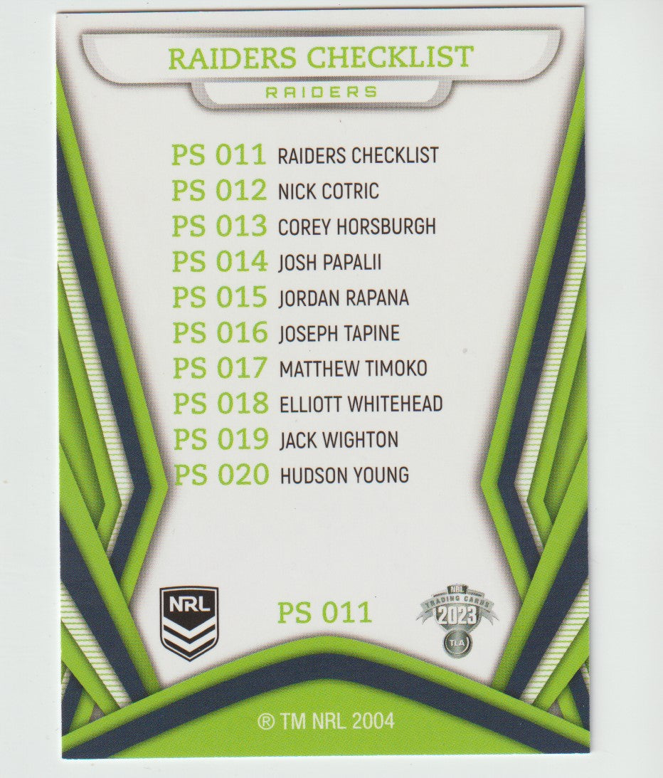 PS 011 RAIDERS CHECKLIST 2023 NRL Traders