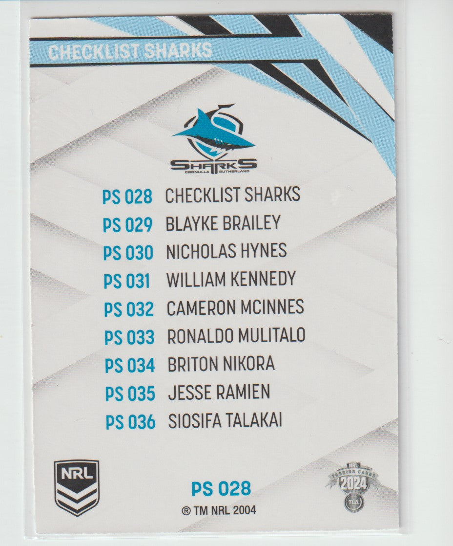 PS 028 SHARKS CHECKLIST 2024 NRL Traders