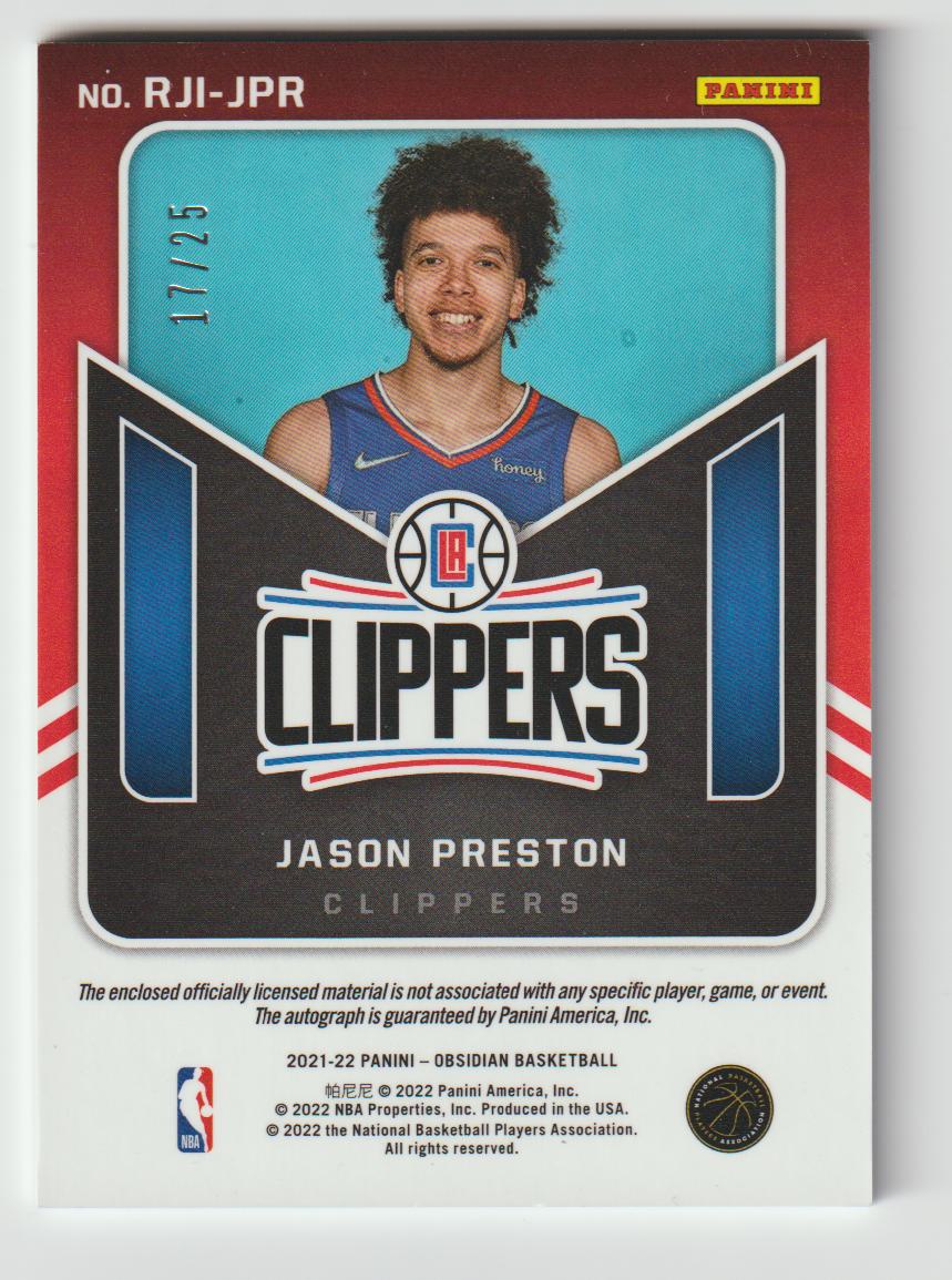 Rookie Jersey Ink RJI-JPR Jason Preston - Los Angeles Clippers Electric Etch Orange 17/25