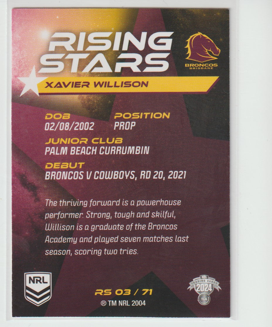RS 03 / 71 BRONCOS XAVIER WILLISON 2024 NRL Traders