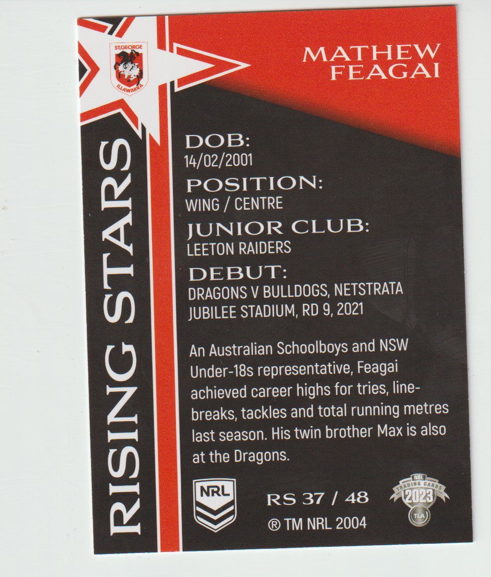 RS 37 / 48 DRAGONS MATHEW FEAGAI 2023 NRL Traders