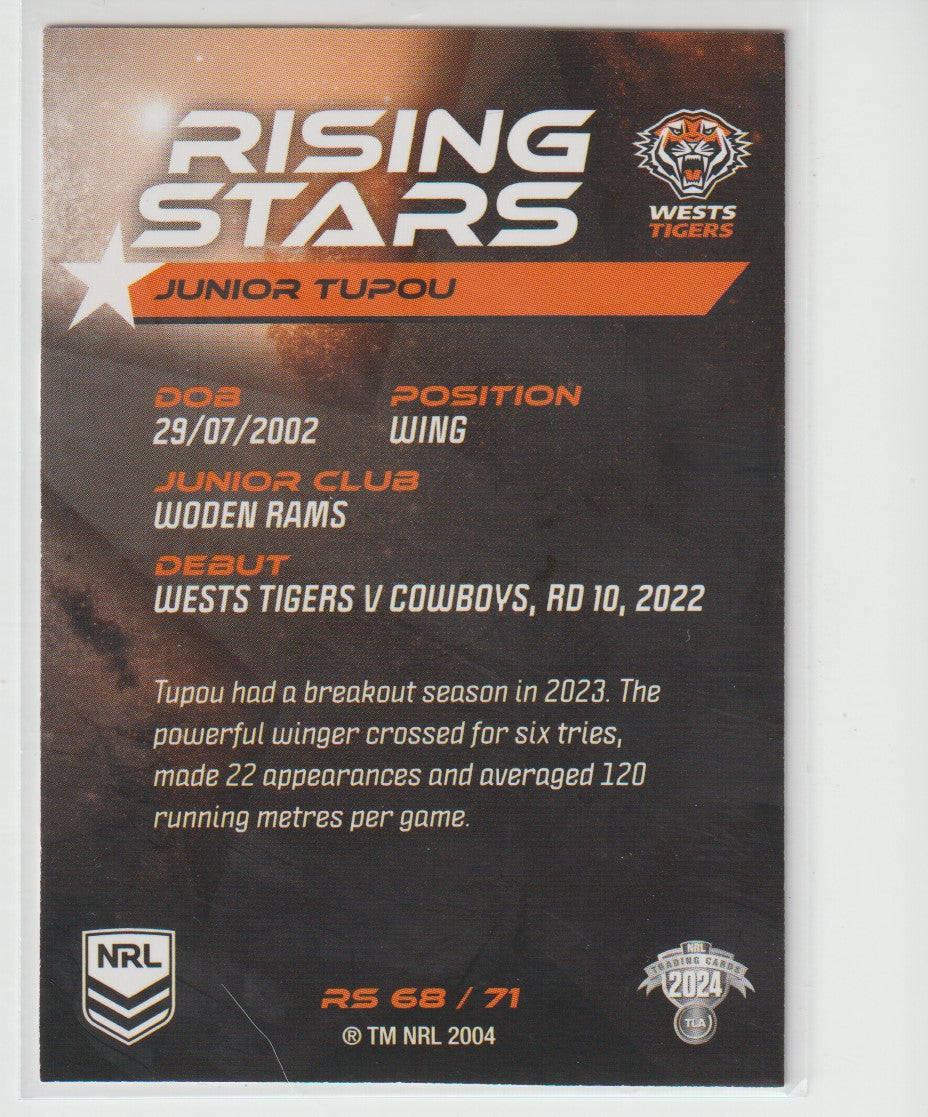 RS 68 / 71 WESTS TIGERS JUNIOR TUPOU 2024 NRL Traders
