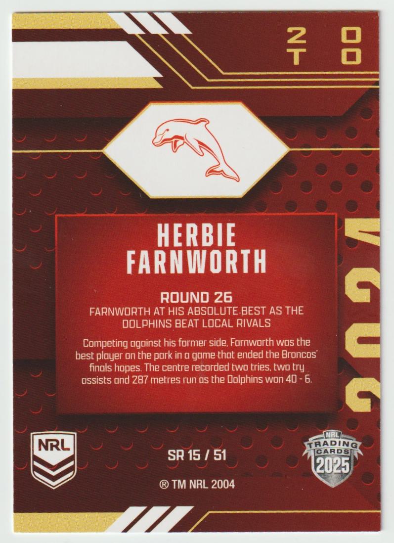 Season to Remember SR 15 DOLPHINS HERBIE FARNWORTH 2025 NRL Traders We prioritize the safe delivery of your sports cards. Each item will be securely packaged in a padded mailer to ensure it reaches you in pristine condition. Please be aware that our standard letter with tracking option includes a registered padded mailer for added security. Take advantage of our combined postage offer for multiple card purchases, or opt for tracked postage, available for both Australian and international buyers at their expense.