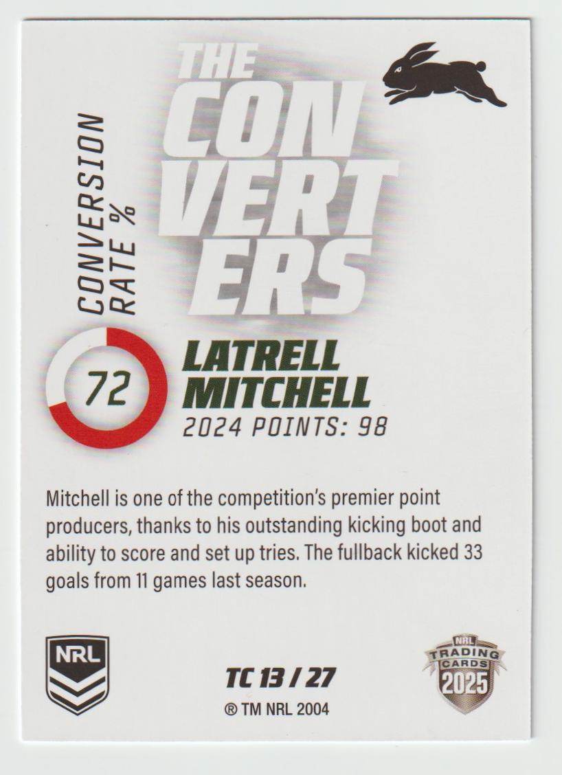 The Converters TC 13 RABBITOHS LATRELL MITCHELL 2025 NRL Traders We prioritize the safe delivery of your sports cards. Each item will be securely packaged in a padded mailer to ensure it reaches you in pristine condition. Please be aware that our standard letter with tracking option includes a registered padded mailer for added security. Take advantage of our combined postage offer for multiple card purchases, or opt for tracked postage, available for both Australian and international buyers at their expense.
