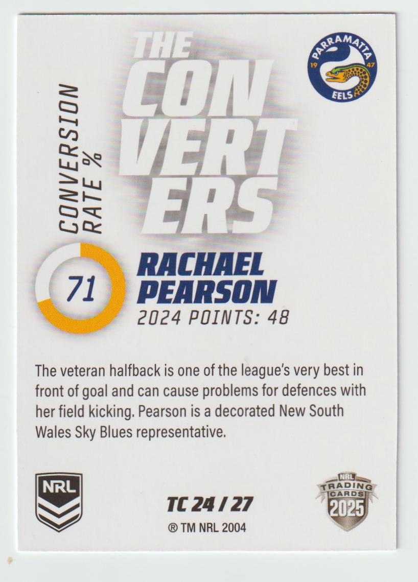 The Converters TC 24 EELS RACHAEL PEARSON 2025 NRL Traders We prioritize the safe delivery of your sports cards. Each item will be securely packaged in a padded mailer to ensure it reaches you in pristine condition. Please be aware that our standard letter with tracking option includes a registered padded mailer for added security. Take advantage of our combined postage offer for multiple card purchases, or opt for tracked postage, available for both Australian and international buyers at their expense.