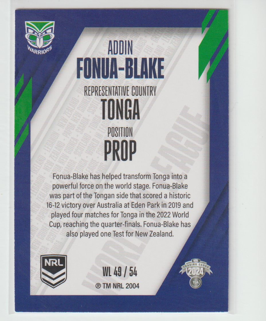 WL 49 / 54 WARRIORS ADDIN FONUA-BLAKE 2024 NRL Traders